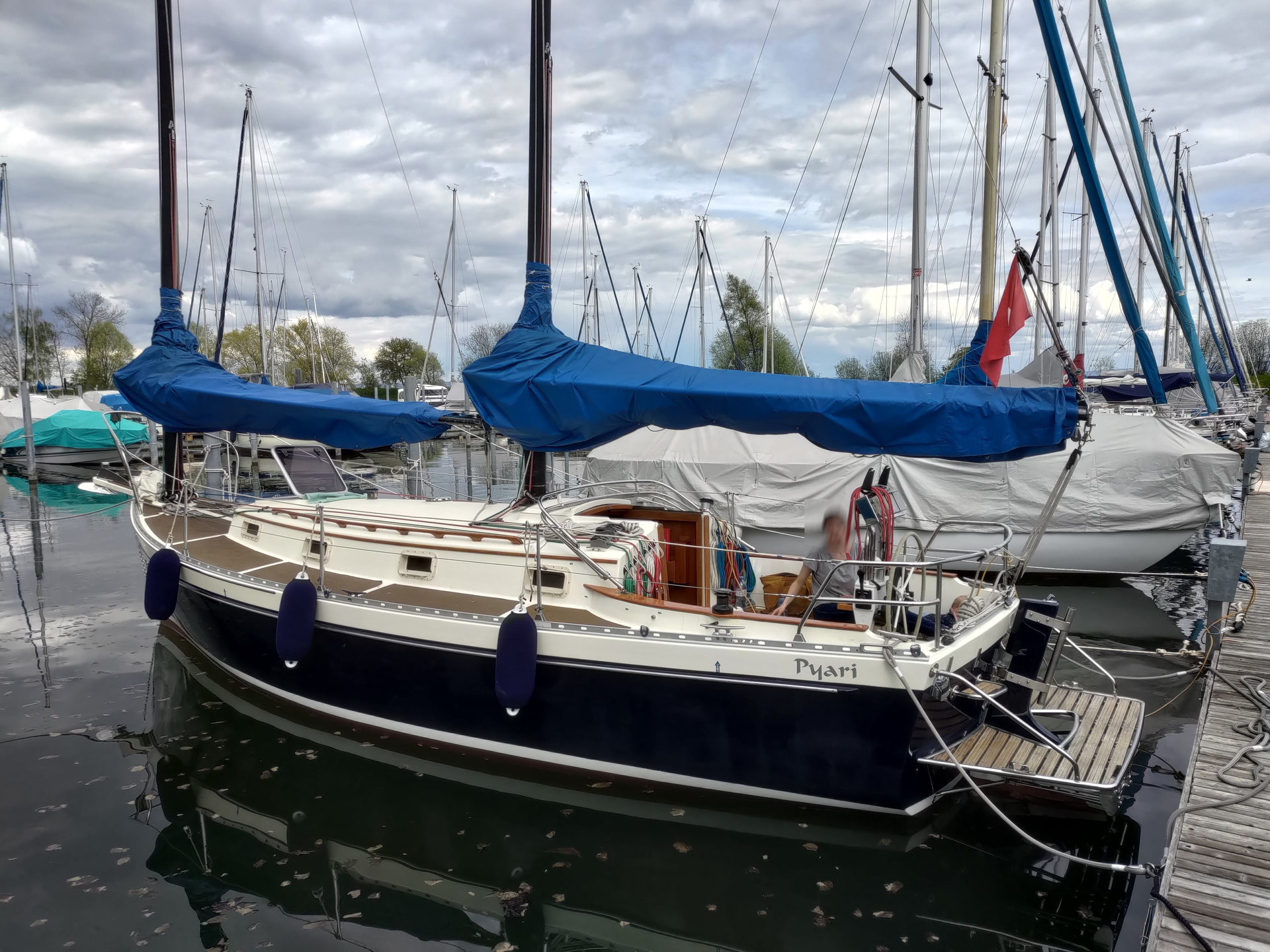 Can I suggest you consider installing a deep swim/rescue ladder on the side of the boat….around midships…easily deployed…on a universal joint at the front…on a rest at the aft end. An idea I copied from an Amel. We have used it a lot. Also if you have an MOB in rougher water, the aft end is a poor choice for recovery….