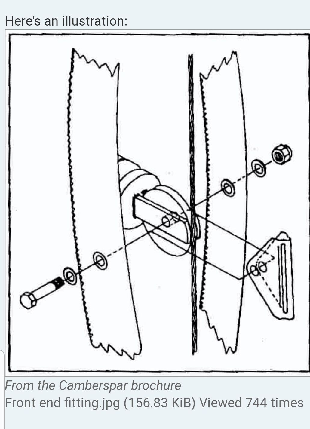 On my F32 (Mull) I use large “penny washers” on either side of the sail eyes in order to help protect the sail from abrasion - these washers are larger than the ones shown. I would recommend changing your current bolt arrangement over to a ‘drop nose’ pin of suitable length and diameter - it will simplify installation and removal and reduce the number of small parts you have to handle.