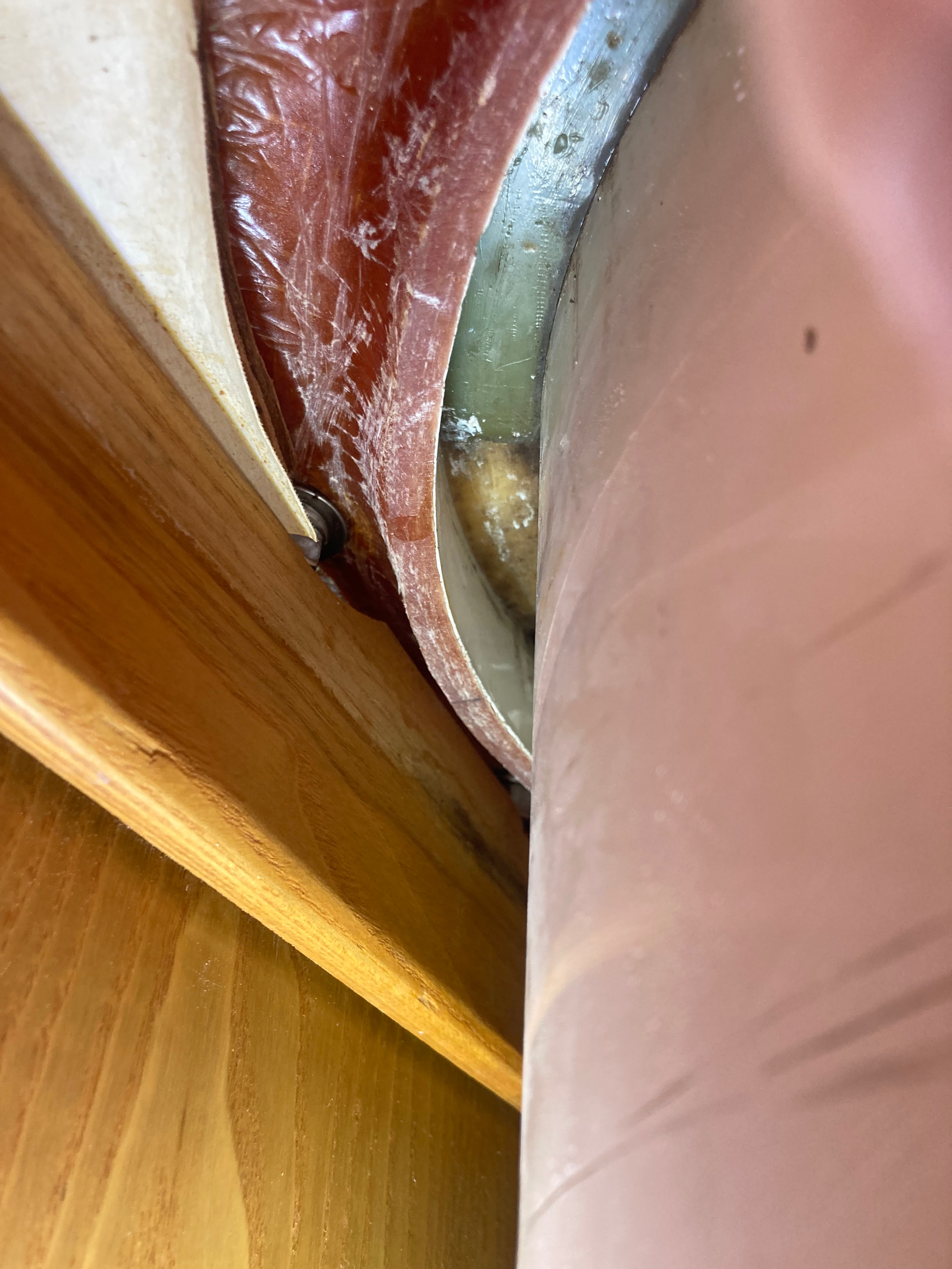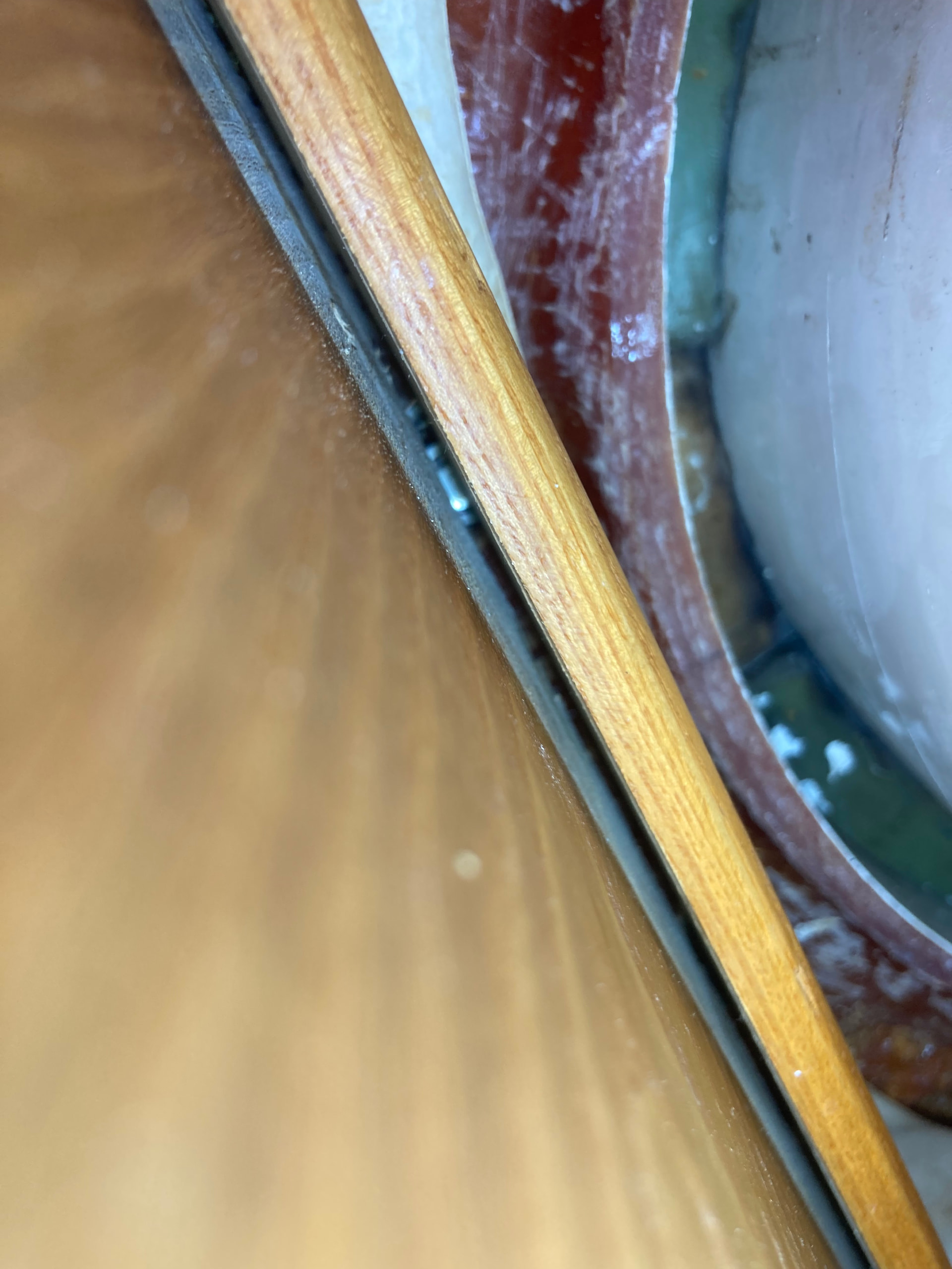It looks like you have the original urethane ring, which was sealed around the mast with silicone. It’s not delrin, as it needs to be soft enough to handle some movement of the mast. You could unbolt and lift up the ring on deck, dig it all out and clean it up, and then re-seal it to prevent further water ingress. But @Eben is right, go with Spartite. It’s a great product, and it’s perfect for Freedom masts.