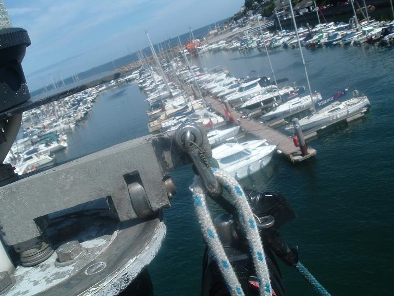 These swivels are peculiar to british-built Freedoms, and in my opinion are over engineered. I have them. They require regular maintenance (the ball bearing and pivot pin) and you need a crane to go up every time. You can get away with the same effect with a swivel shackle on your halyard, or nothing at all. Minimal impact on the twist if your sail.
