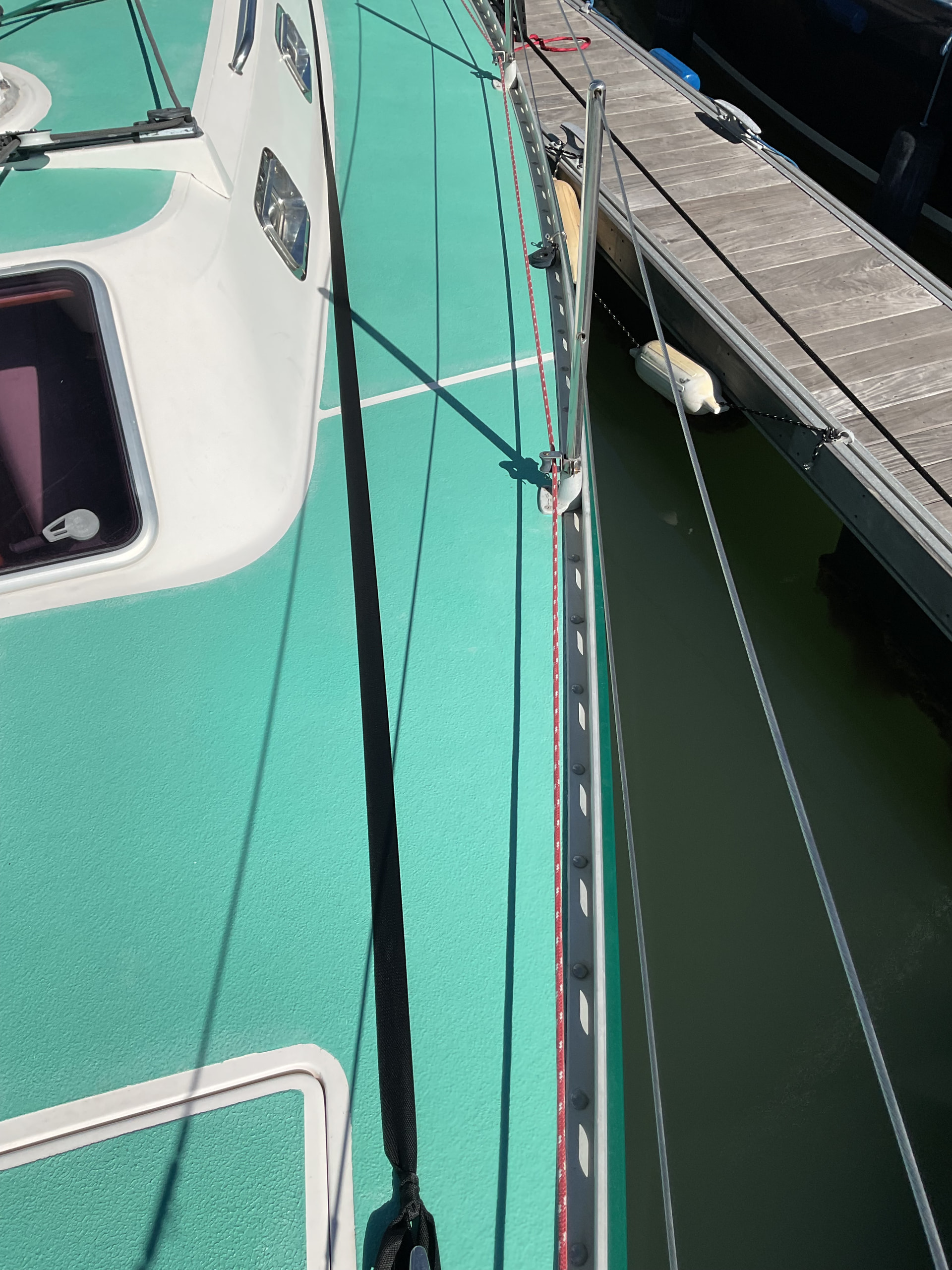 Hi, we bought our Freedom 40/40 hull 1 in July and finally, after a lot of work got her back in the water. Looking at fixing some non-skid damage in the summer, does anyone know what non-skip/anti-slip was used, or one that might be a close match.