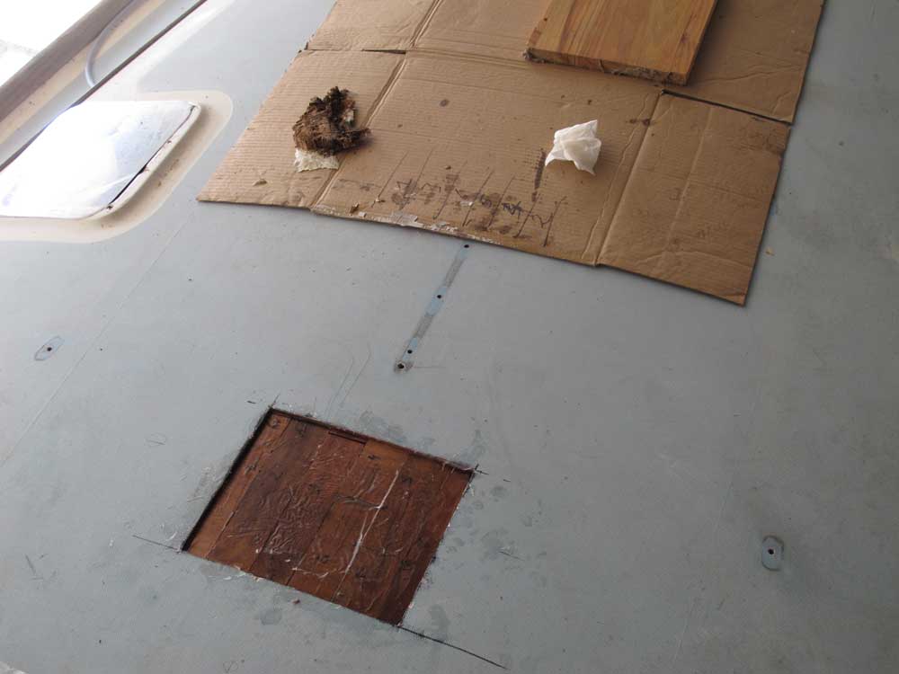 Just for the record, the shipyard made a major blunder. The balsa wood wasn’t protected around the hole. An unforgivable mistake for professionals. But I found the same mistake with the deck fillers.