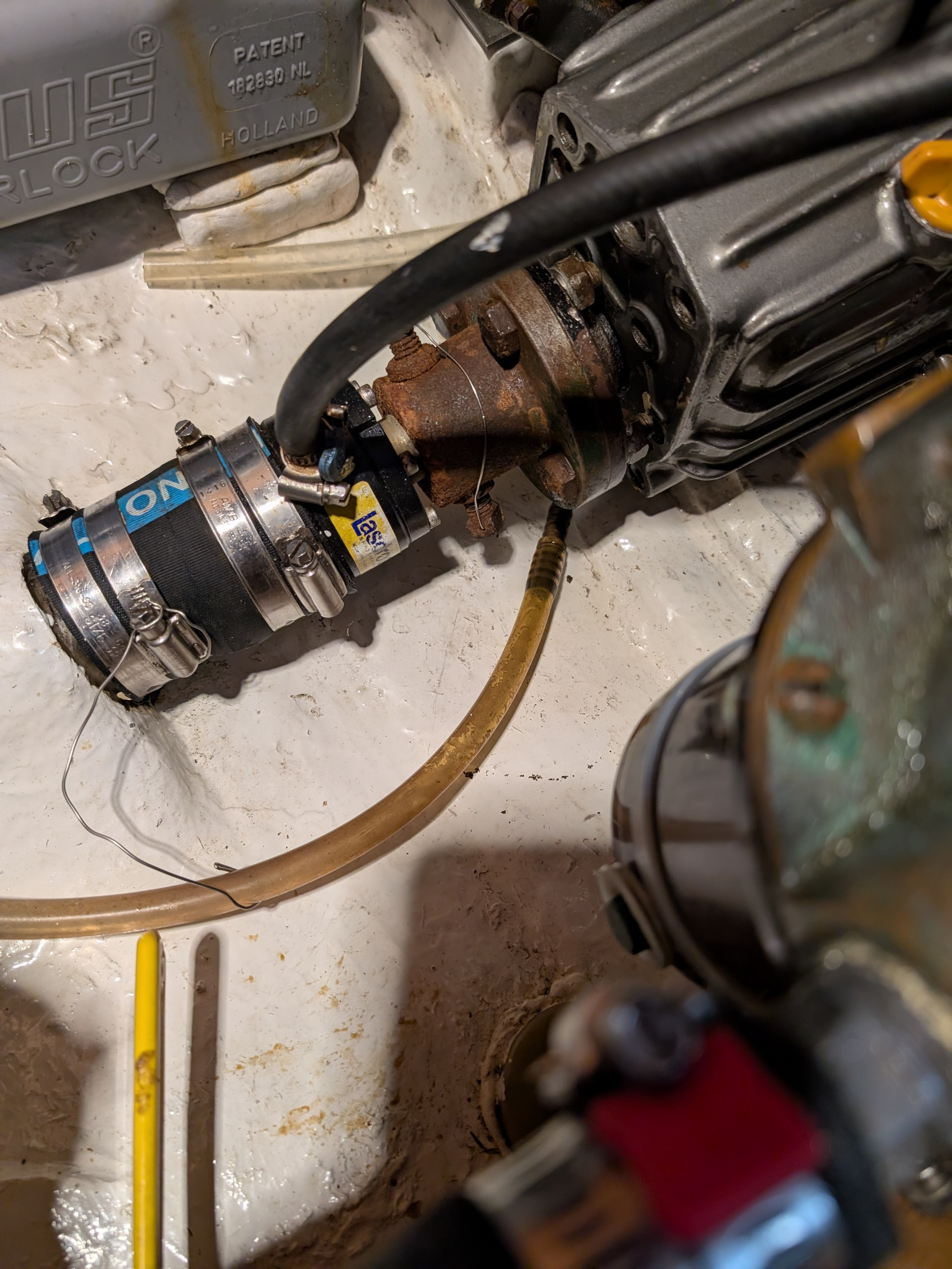 Otherwise a good seal. The hose you see going up is a vent hose with open top above waterline. This assures lube/cooling water is always present in seal.