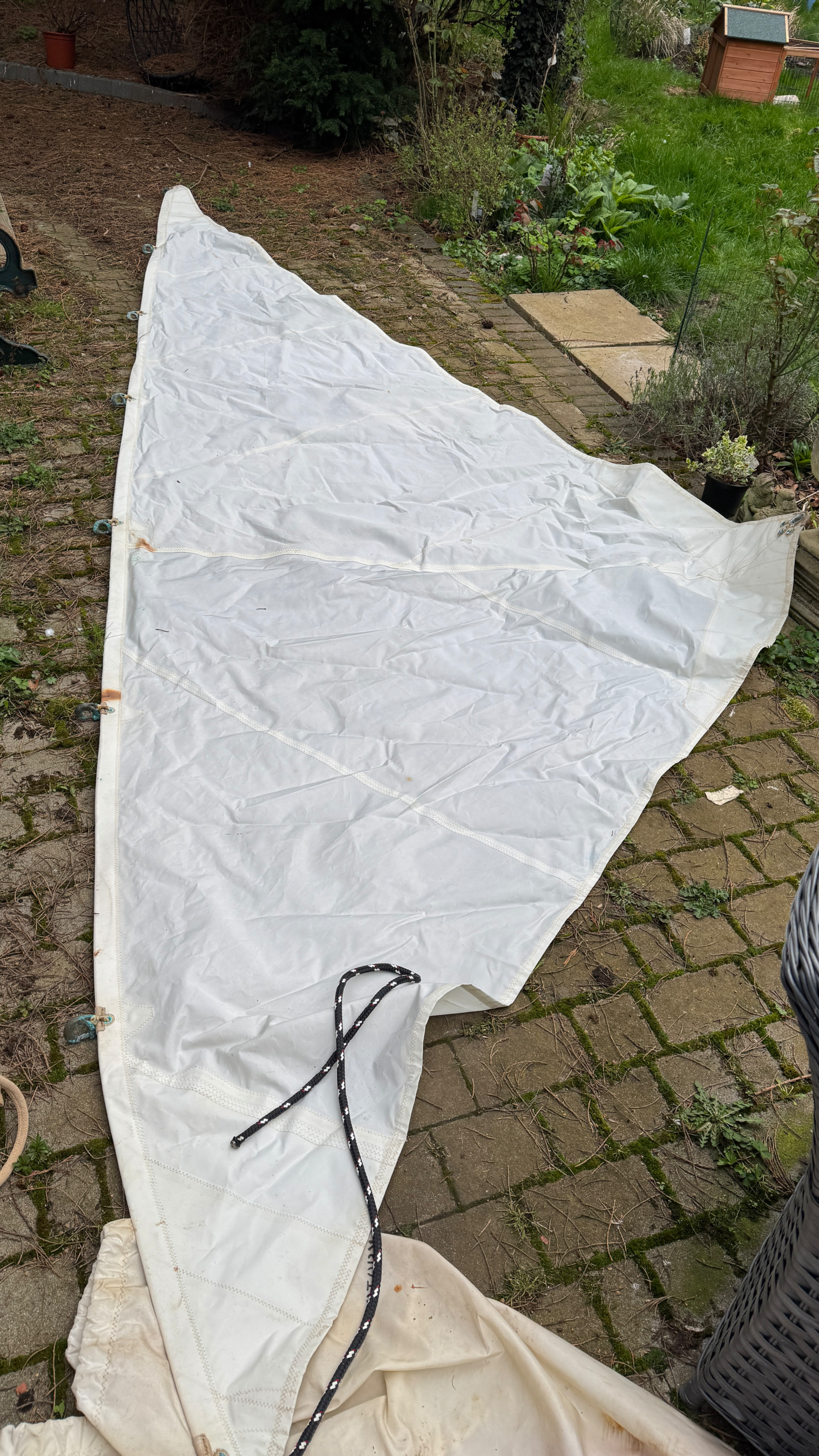 So it can be a useful sail. I would set up and test then keep it aboard. Just figure out a reasonably workable sheeting arrangement and go for it.